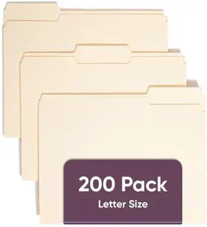 Sturdy File Folders with Reinforced Tabs for Filing and Organization, 1/3-Cut Tab, Assorted Positions, Letter Size, 8.5x11 inches, Manila, 100-Pack