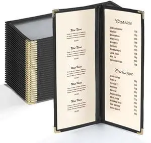 WeChef 30pcs Menu Cover 8.5x11" Letter Double Fold 2 Page 4 View Restaurant Cafe Black Trim
