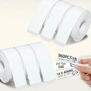 960 Pcs White D30 Label Maker Tape, D30 Label Tape, Thermal Printer Paper, Smart Mini Label Maker Refill for Office, Home, Shcool,14x40mm,160 Labels/Roll, 6 Rolls- Brand: HP