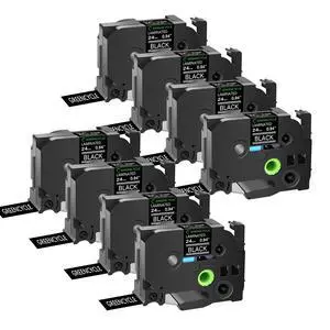 GREENCYCLE TZe-355 24mm 0.94 Laminated Black Tape Compatible for Brother P-Touch White on Black TZ-355 TZe355 1 inch TZe TZ Tape for Ptouch PT-D600 PT-D610BT PT-P700 PT-P710BT, 8 Pack