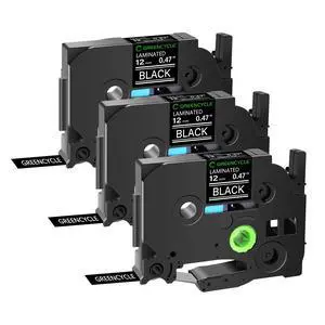 GREENCYCLE TZe-335 12mm 0.47 Laminated Black Tape Compatible for Brother P-Touch White on Black TZ-335 TZe335 1/2 inch TZe TZ Tape for Ptouch PT-D210 D220 H110 H100, 3 Pack