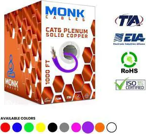 CAT6 Plenum 1000ft Cable | Solid Internet Wire | CMP Plenum Rated | 23AWG 550MHz UTP | Network Ethernet Cable Bulk Purple