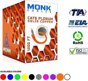 CAT6 Plenum (CMP) 1000ft Bulk Ethernet Cable | 100% Pure Solid Bare Copper | 550MHz, 23AWG, 4Pair UTP 10GB Internet Cable Orange