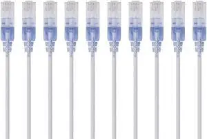 Monoprice SlimRun Cat6A Ethernet Patch Cable - Network Internet Cord - RJ45, 550Mhz, UTP, Pure Bare Copper Wire, 10G, 30AWG, 7ft, White, 10-Pack