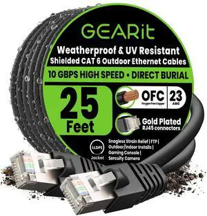 GEARit Cat6 Outdoor Ethernet Cable (25ft) 23AWG Pure Copper, FTP, LLDPE, Waterproof, Direct Burial, In-Ground, UV Resistant, POE, Network, LAN, Internet, Cat 6, Cat6 Cable - 25 Feet