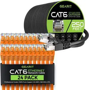 GearIT 24Pack 3ft Cat6 Ethernet Cable & 250ft Cat6 Cable