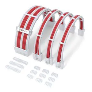 PSU Cable Extension,Customed Pre-Bend PC Power Supply Cable,1x 24 Pin ATX / 1x 8 (4+4) Pin EPS/Longer 2X 8 (6+2) Gold-Plated Pin Pcie,Nylon Sleeved Red White,4 Kits