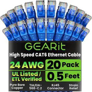 Cat6 Patch Cables 15 Feet (6 Pack), Cat 6 Ethernet Cable, 24AWG CCA, UTP Network Cord, Internet Cable, Compatible for PC, Laptop, Router, Switch, Server, Printer, RJ45 LAN with 25 Cable Ties - 15FT