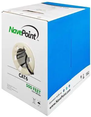 NavePoint CAT6 Ethernet Cable - CCA Bulk CAT6 Cable 500ft Ethernet Cable, 550MHz, 23AWG 4 Pair, Unshielded Twisted Pair (UTP), Solid Black