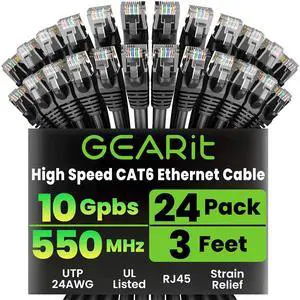 GEARit Cat 6 Ethernet Cable (10-Pack 25 Feet) Cat6 Network Patch, 10Gbps, RJ45, Snagless Cord, Gold-Plated Connectors, Internet for PC, TV, Tablet, Router, Printer, Servers, IT Data Center - White- Model #: VINIUSIKI487435759763NIU
