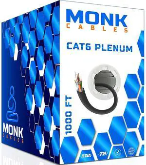 MONK CABLES | CAT6 Plenum Cable 1000ft | UTP, 23AWG, 550MHz | DSX-8000 Certified | Most Certified Cable of The Whole Market (Black)