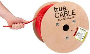 trueCABLE Cat5e Riser (CMR), 1000ft, Red, 24AWG 4 Pair Solid Bare Copper, 350MHz, PoE++ (4PPoE), ETL Listed, Unshielded Twisted Pair (UTP), Bulk Ethernet Cable