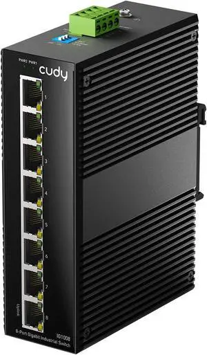 Cudy 8 Port Gigabit PoE Industrial Network Switch, 802.3 at/af PoE, DIN-Rail Switch IP40 Rated, Polarity Reverse Protection, Short Circuit Protection, Broadcast Storm Prevention, IG1008P