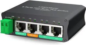 LINOVISION 4 Ports Mini Solar PoE Switch Works Directly with DC12V or DC24V Batteries, Provide 2 PoE+ Ports, 1 High PoE+ Port for Big PTZ Cameras and 1 Passive 24V PoE Port for Bridge