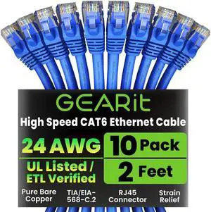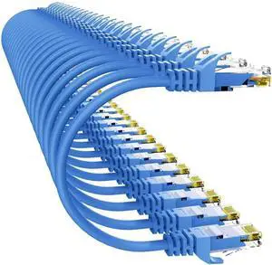 24-Pack 1FT Cat6 Ethernet Cable, Patch Cable, High-Speed LAN Cable with RJ45 Connectors, Gigabit Network Cord for Router, Modem, PC, Xbox, PS5, Computer, Durable & Reliable, Blue