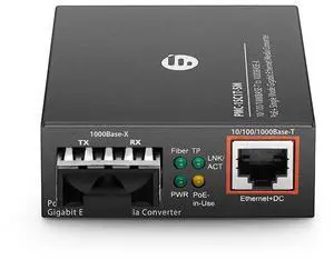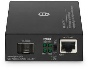 Unmanaged 10/100/1000Base-T RJ45 to 100/1000Base-T SFP PoE+ PD Converter, SM & MM 120KM Auto-MDI/MDIX LFP 0 to 50C