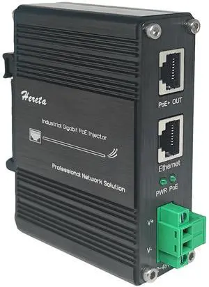 Industrial Hardened Gigabit PoE+ Injector 60W High Power, IEEE802.3af/at Compliant,12~48VDC Input,IP40 Aluminum Case with Surge Protection,DIN- Rail, Wall Mount Setup, -40F to 176F Wide Temperature