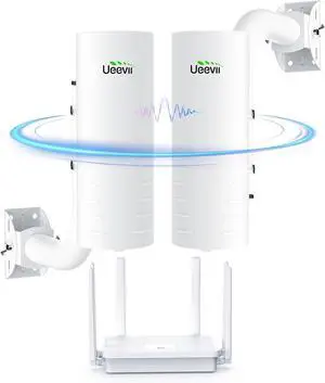 UeeVii Wireless Bridge Point to Point Outdoor CPE452Kit,with AX3000 WiFi Router,Adjustable Pole Mount,5.8G 3KM Range Wifi Bridge PtP/PtMP,Work with Starlink,Extend Network to Barn Garage,24V POE Power