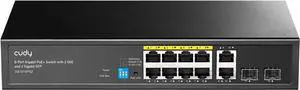 Cudy 8 Gigabit Ethernet Unmanaged PoE+ Switch, 120W, 8 Gigabit PoE+, 2 SFP, 2 Uplink Ports, VLAN/ Extend Mode, 802.3af/at, GS1010PS2