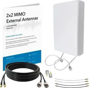 MIMO Panel Antenna Kit by Waveform | +9 dBi Gain | 600-2700 MHz | for 3G, 4G LTE, 5G Modems, Routers, & Cell Boosters | TS9, SMA, U.FL Adapters (Wall Mount Kit w/ 30' Cables + Adapters)