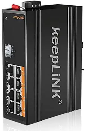 keepLiNK 8 Port Industrial Gigabit PoE Switch, Unmanaged with 8 PoE+ @245w, 1 SFP Slot, DIN Rail Hardened Network Switch, IP40