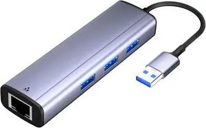 USB to Ethernet Adapter, 4 in 1 Gigabit LAN Network Adapter with 3 x Type-A3.0, USB Hub with Ethernet, RJ45 to Type-A Cable for Laptop, Compatible with Windows, Mac OS, Linux, Surface and More