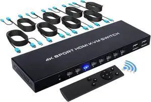 TCNEWCL 8 Port KVM Switch HDMI, 4K@30Hz 8 in 1 Out HDMI KVM Switch for 8 PC Sharing 1 HD Monitor and 4 USB Devices with IR Remote & 8 HDMI Cables