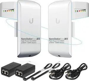 Wireless Bridge Ubiquiti LOCOM5 PRE-CONFIGURED, Bundle of 2 Ubiquiti Nanostation LOCO M5, Point to Point Outdoor WiFi Bridge, Plugh and Play, 5GHz, 150+Mbps, 10+km Link Range, Network Bridge.