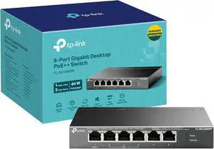 TP-Link 6-Port Gigabit Desktop Switch with 3-Port PoE+ and 1-Port PoE++, PoE Auto Recovery, 64 W Budget, Transmission Range up to 250 m, Durable Metal Housing, Plug and Play (TL-SG1006PP)