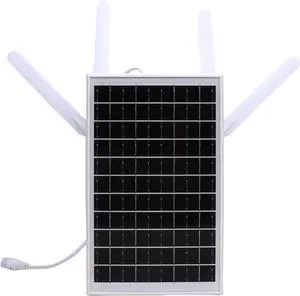 Fdit Outdoor 4G Solar Router, IP66, 12W Solar Panel, 300Mbps WiFi Extender with SIM Card Slot for Farms and Construction Sites (Black Antennae)