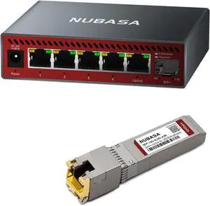 6-Port 2.5GbE Switch & 10G SFP+ to RJ45 Adapter Bundle Multi-Gigabit Unmanaged Ethernet Network Switch with 10G Copper Transceiver for NAS, Server, and High-Speed Uplink