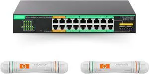 18 Ports PoE Switch, 16 Gigabit PoE+Switch with 2 Gigabit Uplink, 1000 Mbps, Fanless Silent Operation, 250W, 802.3 af/at, Unmanaged, 19''Rackmount, Qos, Suitable for POE Camera System, AP, WiFi