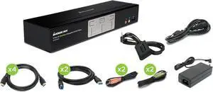 Tripp Lite 4-Port Dual Monitor DVI KVM Switch with Audio, USB 2.0 Hub & Cables (B004-2DUA4-K)