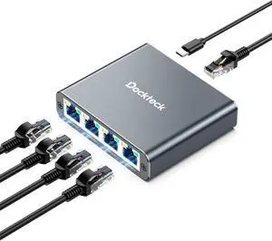 Ethernet Splitter 1 to 4 1000Mbps, Dockteck Internet Cable Splitter 1 in 4 Out High Speed Switch Network Gigabit for LAN RJ45 Port Router Switch Work with Cat5/5e/6/7/8 Cable