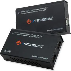 J-Tech Digital USB Over Ethernet Extender USB Balun Over cat5e cat6 99m/328ft PoC, Play and Plug, No Driver Needed, USB2.0 for Game Controller, MAC & PC and USB2.0 Supported Devices [JTECH-BE100]