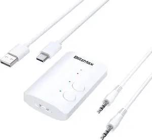 Bluetooth 5.3 Adapter Transmitter/Receiver 2-in-1 Mini Wireless with 3.5mm Audio Cable, Dual Link AptX Adaptive Bluetooth Adapter for Airplane/PC/TV/Car/Gym - White, Black