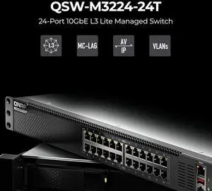 QNAP 24-Port 1U Rackmount High-Density L3 Lite 10GbE Managed Switch (QSW-M3224-24T-US)