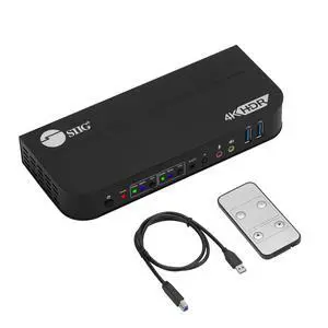 SIIG 2-Port 4K KVM Switch HDMI with Remote Control, 1x HDMI Output, 2X USB 3.2 Type-A Ports, EDID Bypass, Compatible with Windows and Mac (CE-KV0E11-S1)