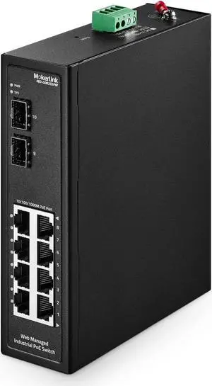 MokerLink 8 Port PoE Gigabit Industrial DIN-Rail Ethernet Switch Managed, 2 SFP Ports, IEEE802.3af/at, 20Gbps Switching Capacity, Web Managed IP40 Network Switch (-40 to 185°F)