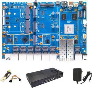 youyeetoo BPI-R4 Pro 8X/4E WiFi 7 Router Board, 8GB DDR4 MT7988A Cortex-A73 1.8GHz, 2x10G SFP+ 4x2.5GbE Ports, Support OpenWrt for Advanced Networking/NAS (Metal case kit,R4 Pro 8X)