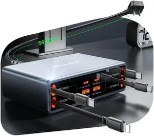 8-in-1 Retractable Charger for Apple Samsung Multiple Devices,Charging Station 105W USB c Gan Usbc Hub,Fast Charger Wall Plug for iPhone 17/16/15,Galaxy S26,Pixel,iPad,Home Office,Desktop Accessories