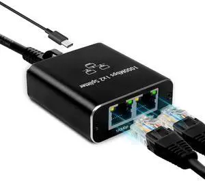 Gigabit Ethernet Splitter 1 to 3, Aluminium LAN Splitter 1000Mbps RJ45 Ethernet Switch Network Splitter with USB C Power Cable for Cat5/5e/6/7/8