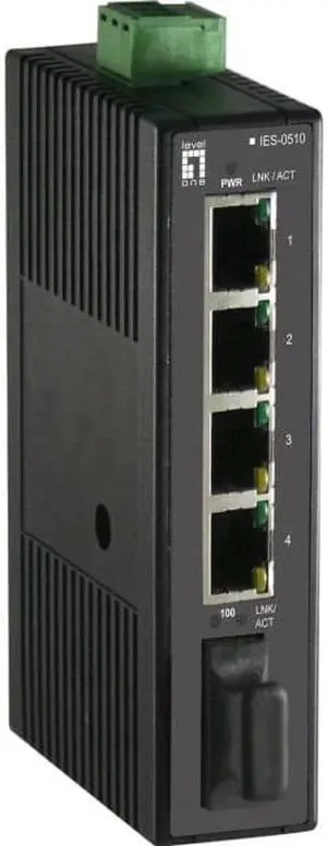 Vivotek AW-IHT-0502 Industrial Switch (4 FE PoE Ports & 1 FE SC Single-Mode 18.6 mi Port)