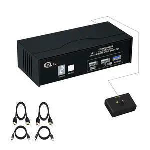 CKLau 8K60Hz 4K144Hz Dual Monitor KVM Switch, 2 Port USB 3.0 HDMI KVM Switch 2 Monitors with Cables, Digital Display for 2 Computers Sharing Keyboard Mouse Display Peripheral Device
