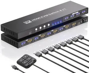 4 Port HDMI KVM Switch 1 Monitor 4 Computers, 8K60Hz 4K120Hz USB 3.0 KVM Switch, Control 4 PCs with 1 Monitor, Keyboard and Mouse