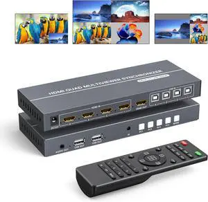 4 Port HDMl KVM Multiviewer 4K@30Hz, 4x1 Quad Multi Viewer Seamless Switcher 4 in 1 Out Support 4K 1080P 720P, 6 Viewing Modes with Keyboard Hotkey Switch and IR Remote