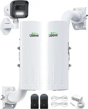 UeeVii Wireless Bridge with Camera: Long Range Point to Point Security System CPE450 + 3MP IP Camera Kit, Easy Setup for Homeowner and Business Owner for Barn Farm Ranch Warehouse Factory Security