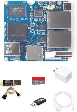 NanoPi R76S Mini Router, RK3576 Octa-Core SoC with AI Model, LPDDR5 16GB RAM 32GB eMMC, 6TOPS NPU,Dual 2.5G Ethernet, Support M.2 Wi-Fi Module (None M.2 WiFi, LPDDR4X 4GB, Power Kit)