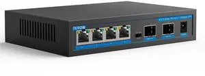 4-Port 2.5G Ethernet Switch with 2 x 10G SFP+ Uplink  TEROW VLAN Supported Network Switch, Compatible with Gigabit/2.5GbE/10GbE for Home Office, NAS, Gaming & Access Points