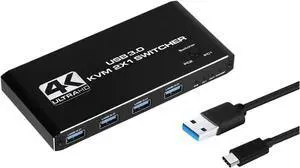 KVM Switcher USB 3.0 Hub Switch HDMI-Compatible 4K Selector Docking Station 2 Computer Share 4 Devices Keyboard Monitor(Button Controller)